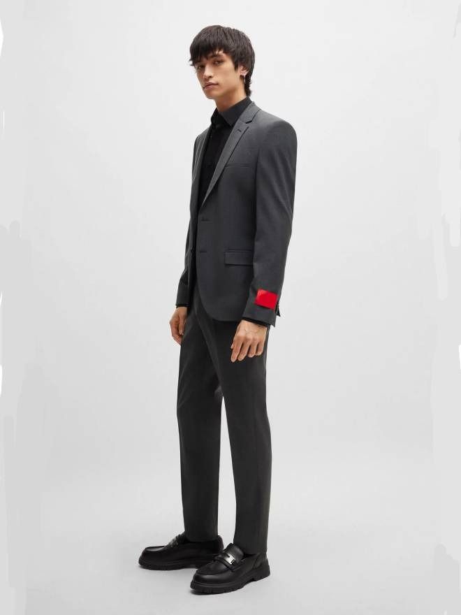 A contemporary suit in an extra-slim fit by HUGO. This ensemble is blended with generous stretch for super-flex performance. This product is made with responsibly sourced wool. For us, responsibly sourced means mulesing free, and meeting the standards of the Five Freedoms of animal welfare.