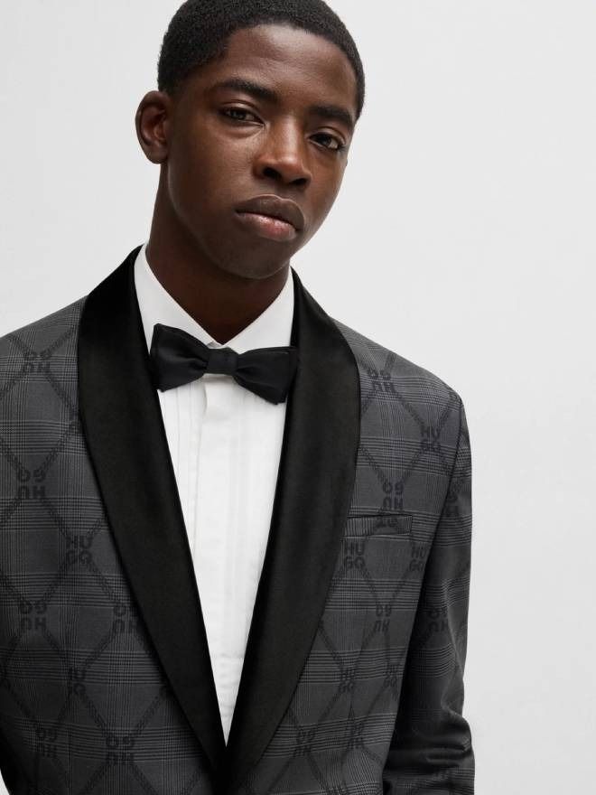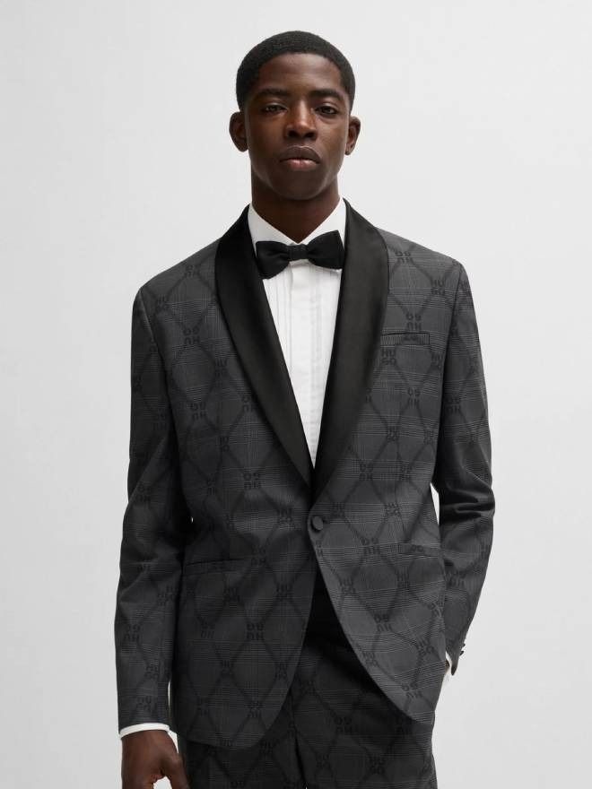 A trend-driven tuxedo with a signature chain print by HUGO. This modern-fit piece is crafted in stretch twill with satin trims.