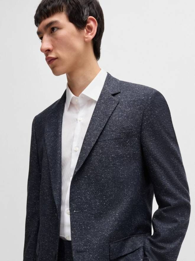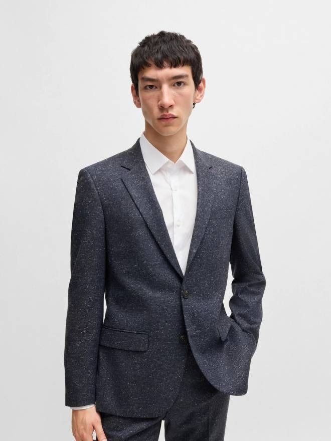 A wool-blend suit featuring a hint of silk by HUGO. Woven with a micro pattern, this ensemble is tailored to a streamlined fit.
