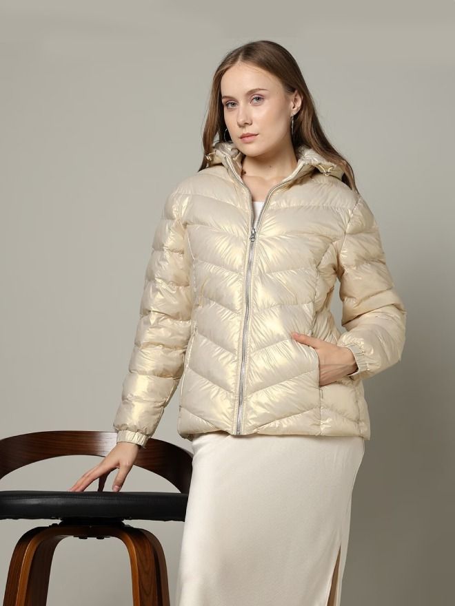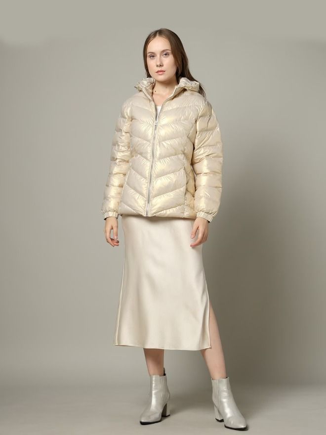 Women Regular Fit Puffer Jacket with Detachable Hood