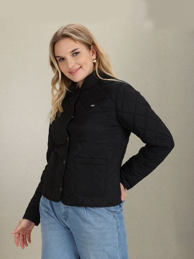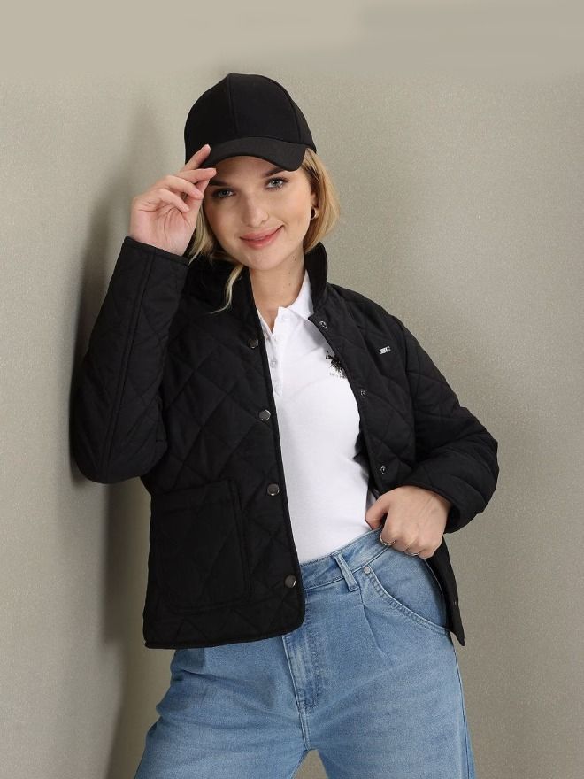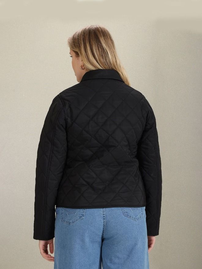 • Spread collar quilted jacket